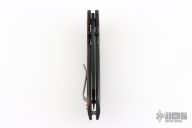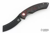 The Red Horse Knife Works Hell Razor P features a black PVD finished blade with dual thumbstuds and a notched thumbrest. The handle has red marble carbon fiber scales with red G-10 pivot collars, inlaid stainless steel liners, tip up bead blasted titanium clip. Comes with original box. Excellent condition.