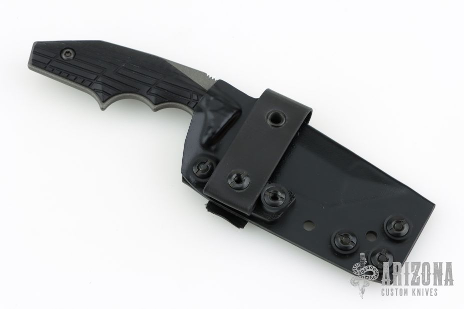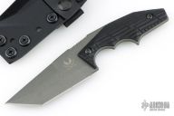 This POGN-L by Bawidamann Blades features a tungsten cerakote blade with a false top edge, notched thumbrest and fileworked spine, .156" blade stock and 1.561" blade depth, full tang construction. The handle has contoured black G-10 VZ-Grips scales. Comes with a kydex sheath. New from maker!