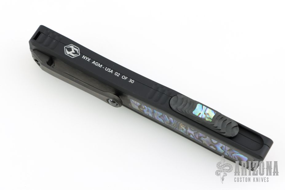 NYX - D/E Baker Forge Damascus Aluminum w/ CF and Abalone Inlays DLC HW #2 of 30