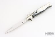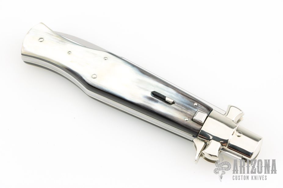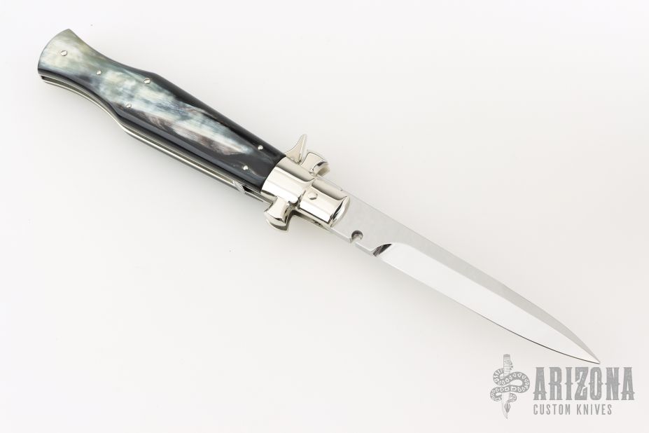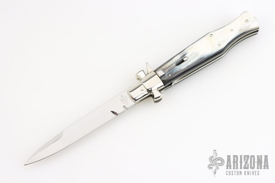 Angelo Campolin Sr. was born in 1923 in Maniago, Italy. He worked on perfecting his knife making skills before WWII and at this time made his first switchblades. After the war, in 1947 he started his company and made 30 stilettos with the marking “Angelo Campolin”. In the 1970’s Angelo’s son Gianni started to work in the company and they were specializing in folding hunting knives and also manual folding stilettos for the Robert Klaas company in Solingen Germany with their Kissing Cranes mark. In 2002 American switchblade collectors Dan Fuller, Brad West, and Tim Zinser were visiting Maniago and enjoying a few glasses of wine in a bar with Angelo Jr. and Gianni. The discussion was about a new name for some knife projects they wanted to pursue. It was Brad West that suggested the tang stamp should be AGA, for Angelo, Gianni, Angelo, thus representing three generations in the knife making business. The Campolins liked it and it stuck. In the beginning it was just a few items, but grew to the point where now there are 12 models and different scale options. The goal has been to offer quality switchblades using the old methods and traditions. Being a collector himself, Angelo Jr. knows what others like. The company headquarters has moved to Austria with production still in the original Maniago shop, as well as the others in Maniago that produce the knives for A.G.A. Campolin.