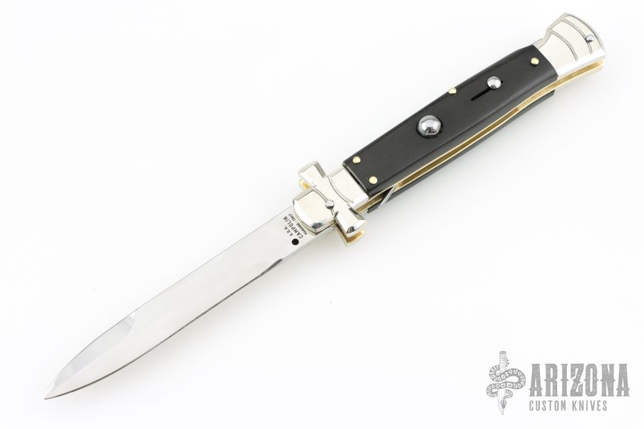 Angelo Campolin Sr. was born in 1923 in Maniago, Italy. He worked on perfecting his knife making skills before WWII and at this time made his first switchblades. After the war, in 1947 he started his company and made 30 stilettos with the marking “Angelo Campolin”. In the 1970’s Angelo’s son Gianni started to work in the company and they were specializing in folding hunting knives and also manual folding stilettos for the Robert Klaas company in Solingen Germany with their Kissing Cranes mark. In 2002 American switchblade collectors Dan Fuller, Brad West, and Tim Zinser were visiting Maniago and enjoying a few glasses of wine in a bar with Angelo Jr. and Gianni. The discussion was about a new name for some knife projects they wanted to pursue. It was Brad West that suggested the tang stamp should be AGA, for Angelo, Gianni, Angelo, thus representing three generations in the knife making business. The Campolins liked it and it stuck. In the beginning it was just a few items, but grew to the point where now there are 12 models and different scale options. The goal has been to offer quality switchblades using the old methods and traditions. Being a collector himself, Angelo Jr. knows what others like. The company headquarters has moved to Austria with production still in the original Maniago shop, as well as the others in Maniago that produce the knives for A.G.A. Campolin.