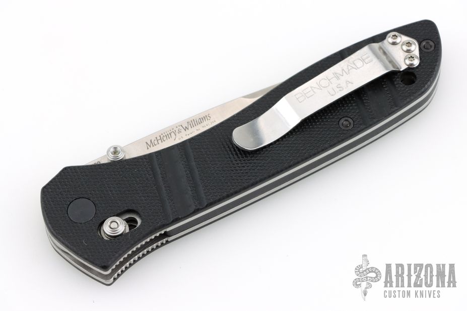 This Benchmade 710-1 features a stonewash finished drop point blade with "90 of 250" on the blade. The handle is black milled G10 with the axis locking mechanism and reversible deep carry clip positioned for tip up carry. Nice action, detent and blade seating. Comes with a Benchmade box. Excellent condition.