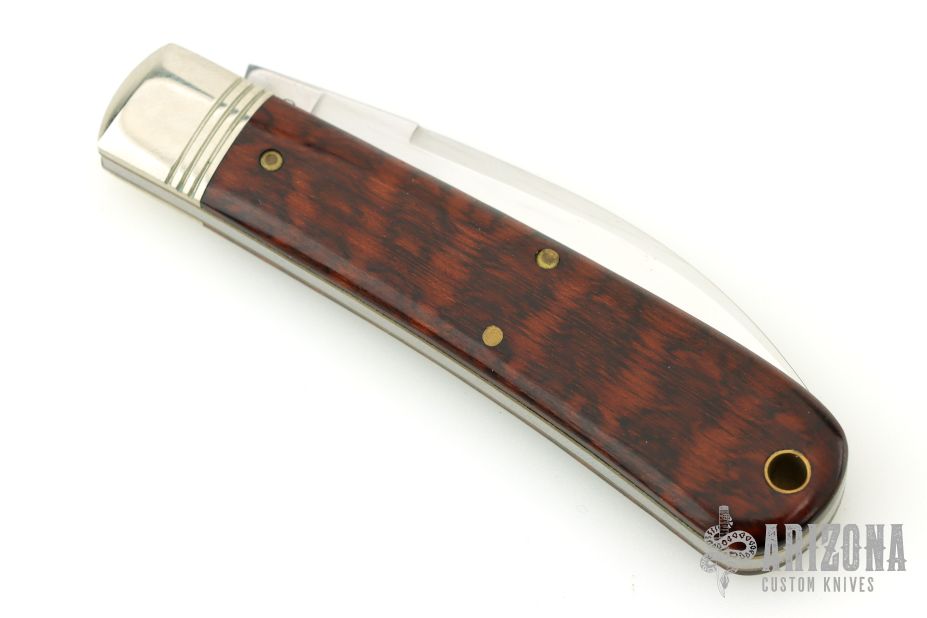 This Viper from Great Eastern Cutlery features a mirror finished wharncliffe style blade with swedge and nail nick. The handle has pinched nickel silver bolsters and escutcheon and snakewood covers over brass liners and steel backspring. Has Half-stop. Includes the original packaging.  Excellent Condition.