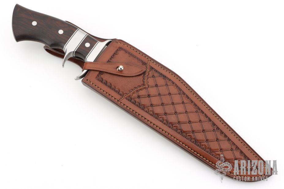 Joe Keesler and Greg Neely shared their love for the forged blade and still are willing to offer pointers when we meet at events. A year later I was able to take the Damascus class under Bill Fiorini. People like Mike Williams, JR Cook, Roger Massey, Jerry Fisk and lots of others shared a wealth of information that money couldn’t buy. I am a member of the American Bladesmith Society with a Mastersmith rating, which I received in 2009. I’m also a member of the Arkansas Knifemaker’s Association. I don’t farm out any of the different aspects of my knives. I do ALL the work on my knives and believe this will advance my skills and set my knives apart. I offer sheaths with my hunting knives because they are hard to use without one and I make them to be used. I do have a professional leather craftsman, whose name is Kenny Rowe, make the sheaths to fit the knife, because this makes the package complete."