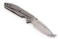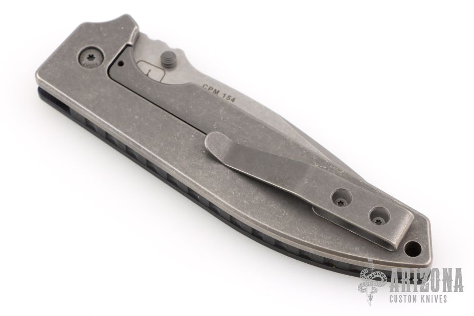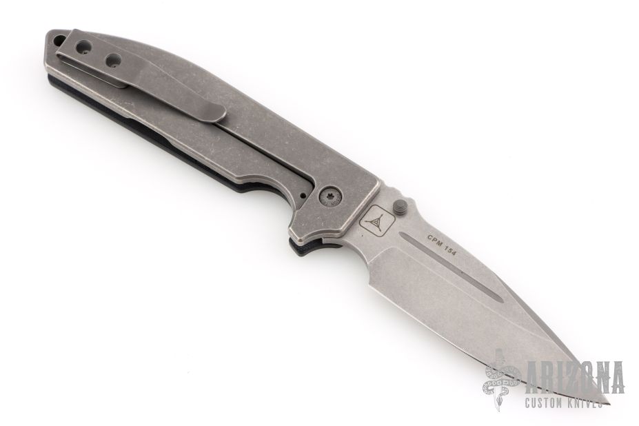 "I am a folder maker. While there will always be the occasional fixed blade, folders are my passion. The steels I enjoy working with include CPM154, ATS-34, 440C, S30V, and Stainless Damascus from Devin Thomas. All of the metal parts on my knives that can be Titanium are Titanium including frames, liners, thumbstuds, bolsters, clips and spacers. Pretty much everything except for the blade. I often anodize a substantial portion of my titanium, and can get a deep green that few makers succeed at. As far as handle materials go, I mostly use Carbon fiber, G10, or Micarta. I use large bronze pivot bushings in all of my folders, and either Nylatron or Bronze washers. All of my parts are made in-house except the screws. I have an old Bridgeport Mill, an older Logan Lathe (1943), a Hardcore grinder, and various other tools, lots of them made by myself. I also do all of my own Heat treating in an EvenHeat Oven." My knives have won several major awards, including Best Tactical Folder at the Blade Show 2011.