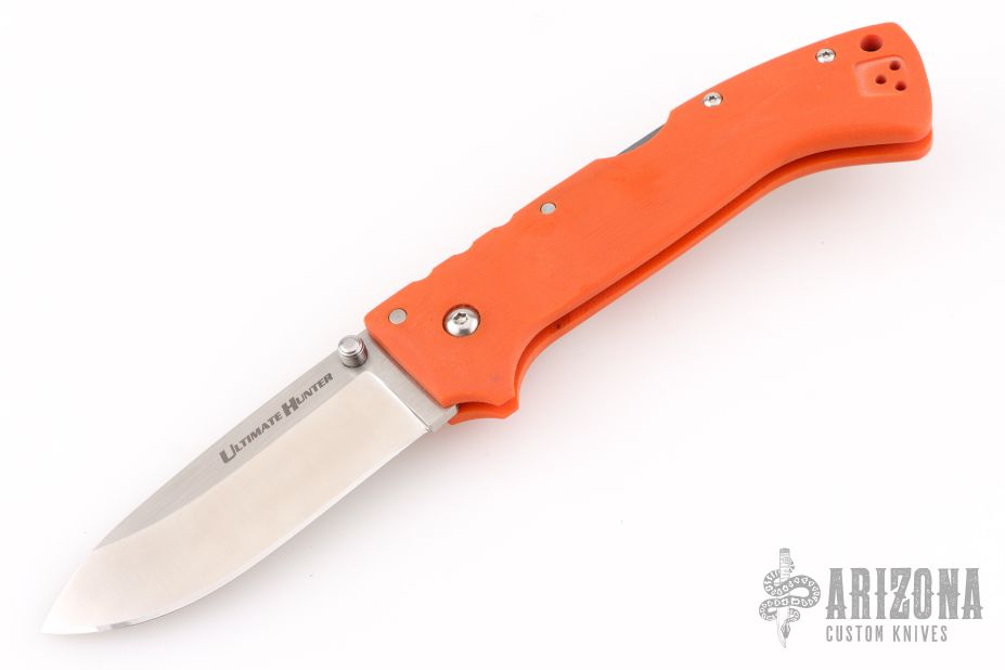 A design collaboration between custom knife-maker Andrew Demko & Lynn C. Thompson, the Ultimate Hunter represents the culmination of almost 3 years of design evolution. Exhaustively field tested on 4 continents - the Ultimate Hunter has proved its worth time and time again! Made from American S35VN Steel, the Ultimate Hunter is hand-ground to a razor edge that will last an amazingly long time. The heavily bead blasted, CNC machined G-10 handles are comfortably smooth, while still giving a very secure, safe grip. Equipped with a super-strong Tri-Ad locking mechanism for extra safety, the Ultimate Hunter is a pure thoroughbred hunting / outdoorsmans blade that also makes an excellent everyday carry knife - practical, functional and incredibly capable!