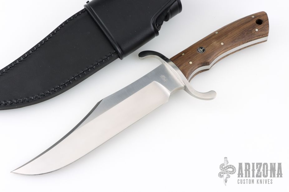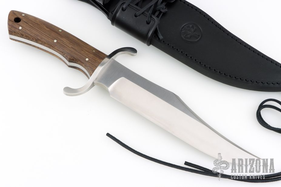 This masterpiece features a massive 6.4 mm N690 steel blade, delivering outstanding strength and cutting performance. The S-shaped stainless steel crossguard with a satin finish pays homage to early American Bowies, while the domestic oak handle scales add timeless authenticity and a warm, natural feel.