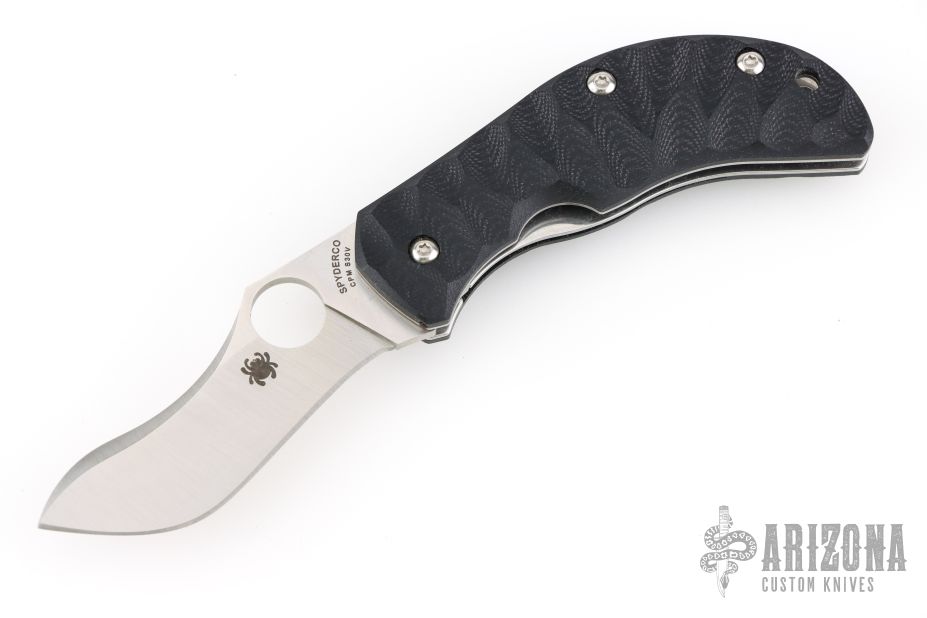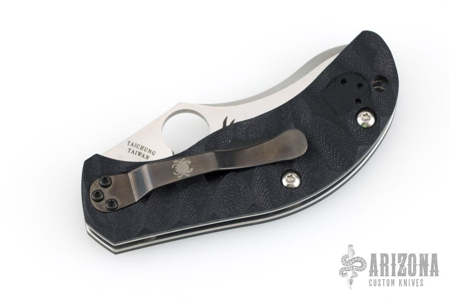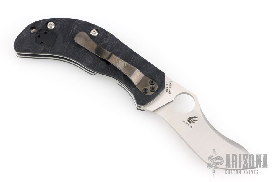 Jens Anso design by Spyderco. Satin finished recurve blade, black G-10 scales and stainless steel liners. Nice detent, lockup and blade seating. Black tip up clip with lanyard hole. Comes with original box and papers. Excellent condition.