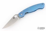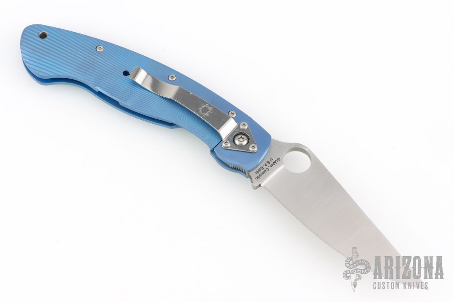 The Military folder from Spyderco has been in production since the 1990s in a variety of steels, materials and colors. This framelock Military folder has a satin finish S30V blade and a fluted and anodized titanium frame. Blade choil and thumbrest are jimped for better control. The oversized blade hole makes opening a natural and smooth action even if wearing gloves. Tip down carry. Comes with original box and papers. Excellent condition.