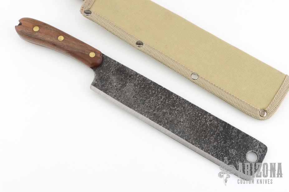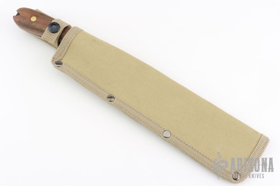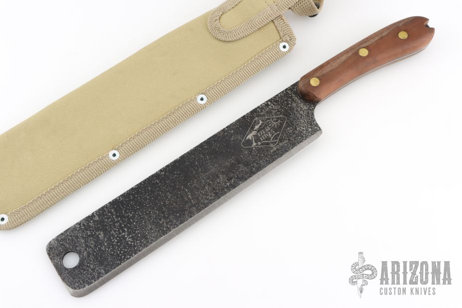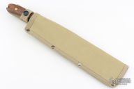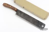The latest offering from Expat Knives (ESEE) is the Libertariat designed by John Armstrong as a lightweight tropical survival knife. A lightweight short machete made to carry with you on your hike, coconut gathering or brush clearing adventures without taking up too much space. It also works very well in the kitchen slicing roast beef or large pork shoulders. It is based on the Latin American cacao or coconut knives that are used and abused in food gathering and prep. The new version of the Libertariat is made in the U.S.A. Comes with original nylon sheath. Excellent condition.