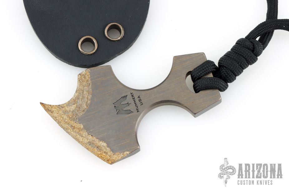 Designed to be a small cutting tool or a backup defensive weapon that is easily carried anywhere, this spunk from Mummert Knives delivers an amazing amount of cutting ability in a small package. The Spunk is constructed out of .205” thick 6Al-4V titanium with tungsten carbide fused to the edge attaining a Rockwell hardness of 72 at the razor sharp edge.  Includes a kydex sheath. Excellent Condition.
