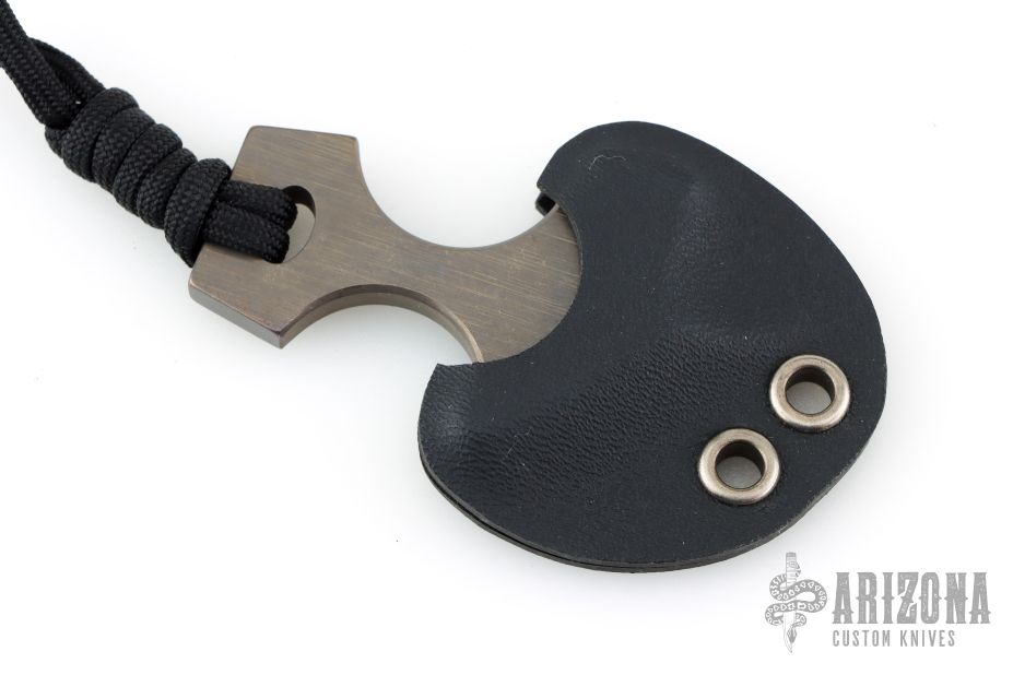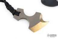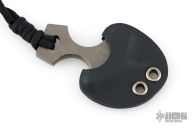 All of our knives are hand made by myself in a very small shop along with my wife Nadine, who does most of our sheath work, in Vista, California. We source all of our materials from U.S. dealers, and use local businesses for our cutting and engraving jobs. My design emphasis is one based on ergonomics first. I believe a good knife should function as an extension of the users hand and, as such, should be both comfortable and secure in the grip. All of my designs start from the handle and grow from there. Most of our tactical knife designs are hollow ground on the primary edge, with a convex ground tip. This gives the user both the fine cutting edge afforded by a hollow grind, with the durability and piercing power of a much more robust tip. Our tomahawks and axes both have convex ground primary edges for increased durability during impact strikes. Due to our close proximity to the ocean here in San Diego County, We focus on using materials that can withstand highly corrosive environments such as salt water. Composite handle materials such as carbon fiber, G-10, and Canvas Micarta are used for most tactical knife handles, and all-titanium hardware on our fixed blade tactical knives, hawks, and axes. All of our tactical knives, hawks, and axes are produced in 6Al-4V Titanium with tungsten carbide bonded edges. Our Tactical knives are also offered in high grade steels such as CPM S30V, CPM 20CV, and CPM 154, while most of our kitchen cutlery is done in AEB-L – a very high grade of stainless steel originally developed for razor blades. For questions, comments, or customer service, you can reach us at [email protected] or 619-228-9300.