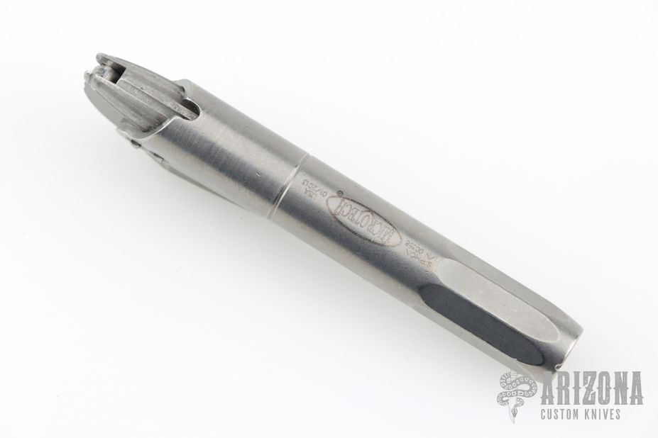 This Siphon pen from Microtech features stainless steel construction. Dated 01/2013 with a S/N of 00338. Has a couple small dings, otherwise excellent condition.