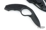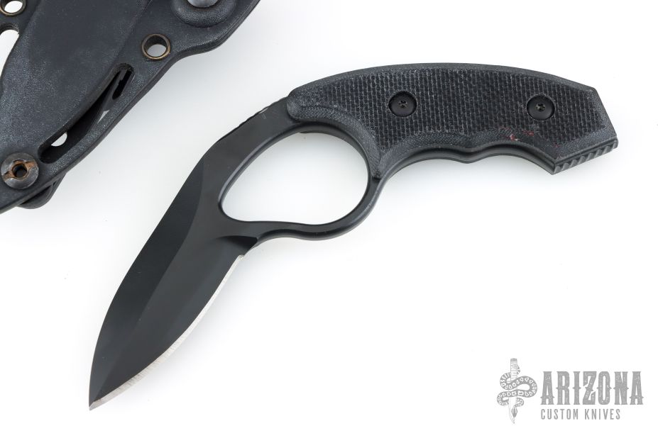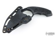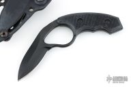 Fixed blade is precision machined from 8Cr14MoV, with black titanium nitride finish. Grips are injection molded with squared surface edges to help prevent grip from twisting inside your hand. The sheath is injection molded featuring black oxide coated stainless steel fasteners for tension adjustment and a black titanium nitride coated stainless steel belt clip.