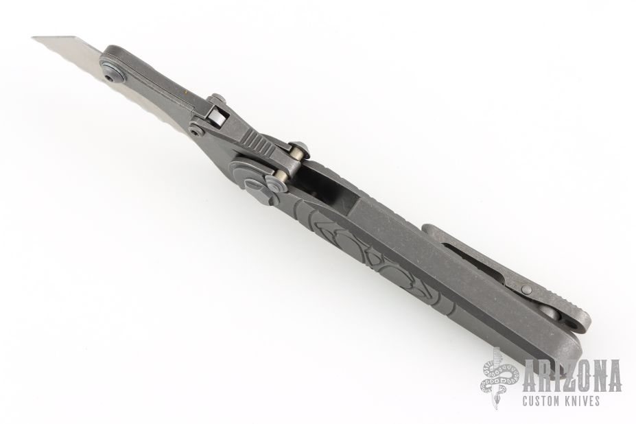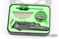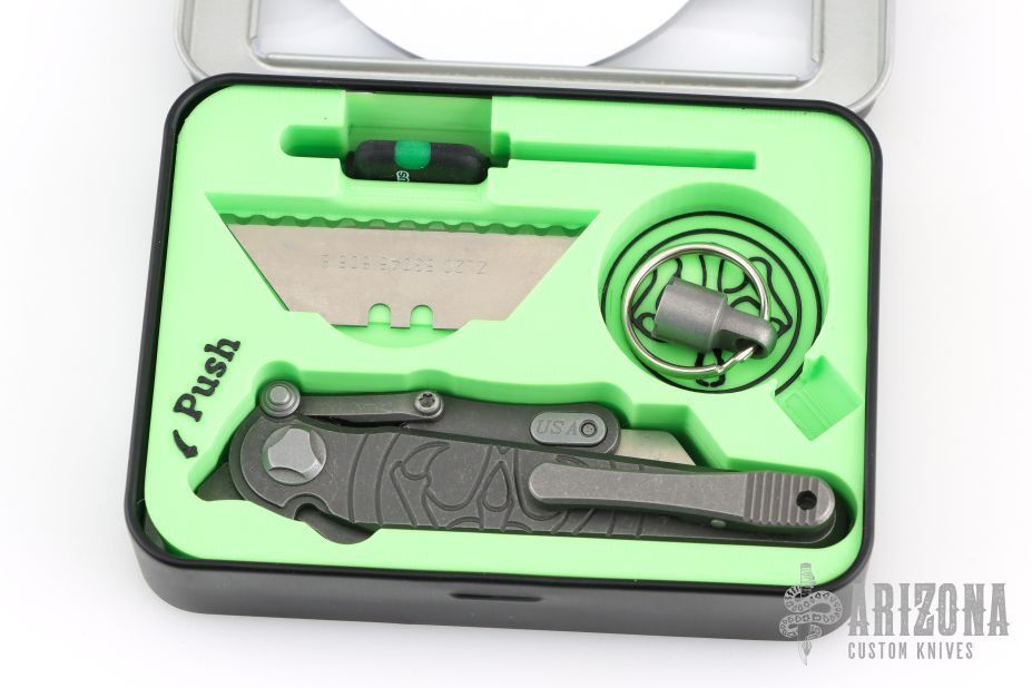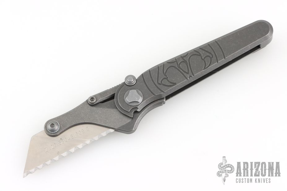 G&G Hawk Shortcut utility knife. Stonewashed Titanium Frame and flipper. Snappy flipping action. Solid lockup, blade seating and centering. Comes with original box and tools to replace the blades. Excellent condition.