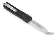 This Scarab II OTF by Microtech features a stonewashed M390 blade dagger blade with one full serrated edge, a Black aluminum handle and a single glass breaker. Dated 05/2021 Serial number 013. Has a couple scuffs on the frame, otherwise excellent condition.