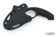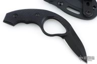 Fixed blade is precision machined from 8Cr14MoV, with black titanium nitride finish.  Grips are injection molded with squared surface edges to help prevent grip from twisting inside your hand.   The sheath is injection molded featuring black oxide coated stainless steel fasteners for tension adjustment and a black titanium nitride coated stainless steel belt clip.