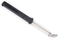 The Paragon Estilleto is based on the ATKO single action out-the-front design but it's been super-sized. Just push the button and the knife fires out the front of the handle. To retract the blade just press the button in and use the retracing lever to pull the blade back in. The Estilleto has a pocket clip for easy tip-down carry and a safety to ensure the knife is not fired by mistake. Made in the USA.  Excellent condition.