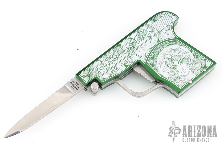 Angelo Campolin Sr. was born in 1923 in Maniago, Italy. He worked on perfecting his knife making skills before WWII and at this time made his first switchblades. After the war, in 1947 he started his company and made 30 stilettos with the marking “Angelo Campolin”. In the 1970’s Angelo’s son Gianni started to work in the company and they were specializing in folding hunting knives and also manual folding stilettos for the Robert Klaas company in Solingen Germany with their Kissing Cranes mark. In 2002 American switchblade collectors Dan Fuller, Brad West, and Tim Zinser were visiting Maniago and enjoying a few glasses of wine in a bar with Angelo Jr. and Gianni. The discussion was about a new name for some knife projects they wanted to pursue. It was Brad West that suggested the tang stamp should be AGA, for Angelo, Gianni, Angelo, thus representing three generations in the knife making business. The Campolins liked it and it stuck. In the beginning it was just a few items, but grew to the point where now there are 12 models and different scale options. The goal has been to offer quality switchblades using the old methods and traditions. Being a collector himself, Angelo Jr. knows what others like. The company headquarters has moved to Austria with production still in the original Maniago shop, as well as the others in Maniago that produce the knives for A.G.A. Campolin.