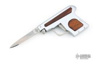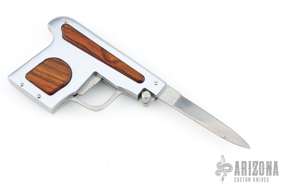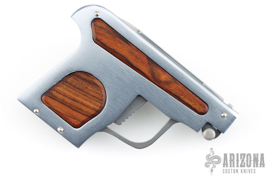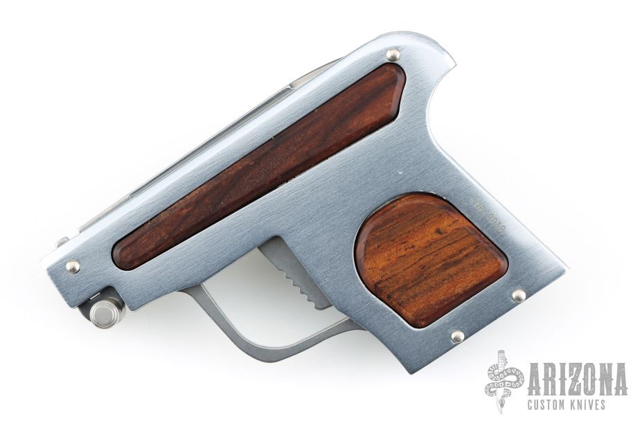 This special automatic knife is a remake of the old Maniago gun-letter opener made on 50's. The handle is made of aircraft anodized aluminum with cocobolo inlays, and the blade of 440C steel. This knife is not for EDC use, but for collectors who like a piece of Italian knife history or like a letter opener. Excellent Condition. Dated 2018 and s/n 196