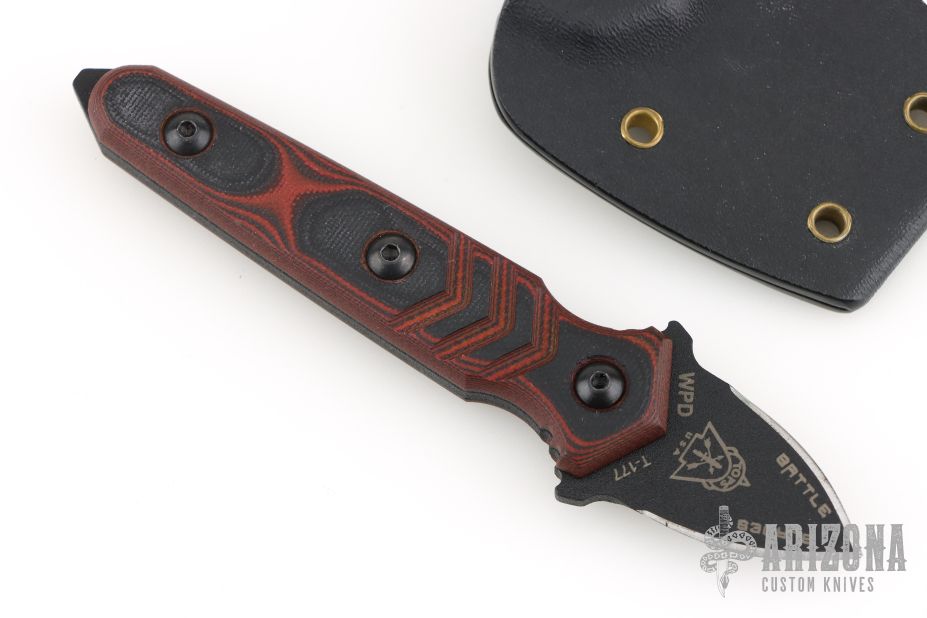 Battle Blades Wolfhawk personal defense blade is designed for up close and personal use in a defensive situation. The lightweight double-edged blade comes with a molded Kydex sheath with a ball-chain neck chain for easy carry. The durable red/black G-10 handle is easy to grip without adding bulk. It includes a plastic high-pitched emergency whistle so you'll be heard over crowd noise. Comes with original sheath. Excellent condition.