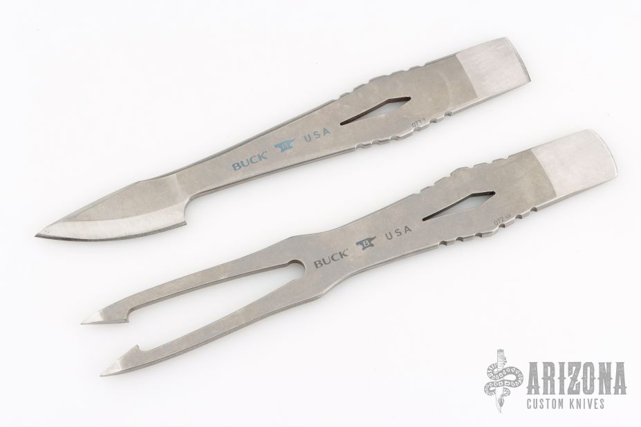As an industry leader, Buck Knives is proud to bring you a set of spearheads! Currently the series is comprised of a Kinetic Hunting Spearhead, a two-tine Kinetic Gig Spearhead and a four-tine Kinetic Fishing Spearhead. Each spearhead features 420HC steel, sharp points for hunting small game/fish and comes with a heavy duty polypropylene sheath.