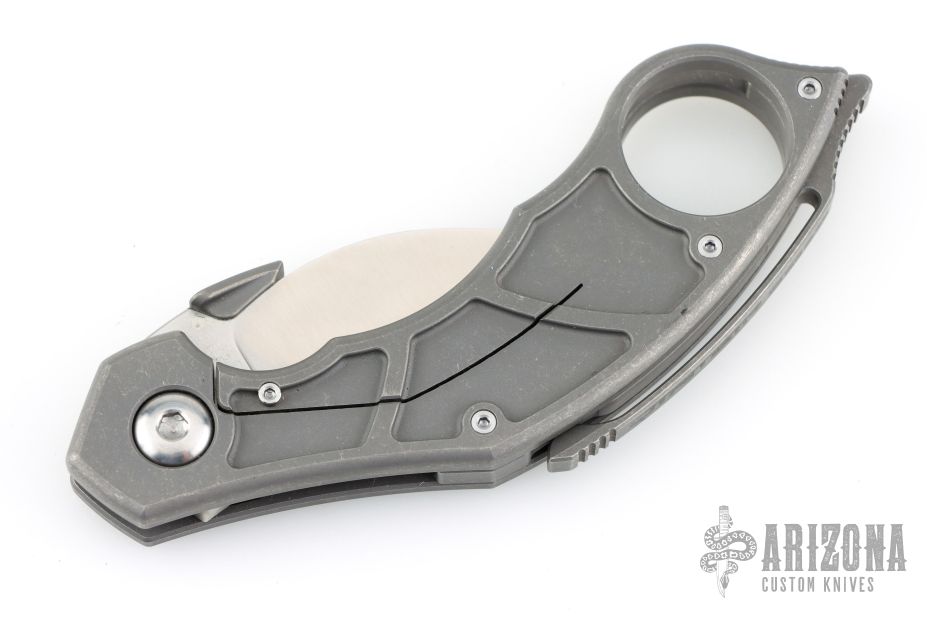 This Murtaugh model is outfitted with a titanium handle and an S35VN karmbit blade in a stonewashed finish.