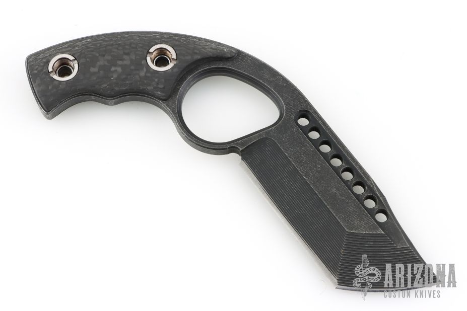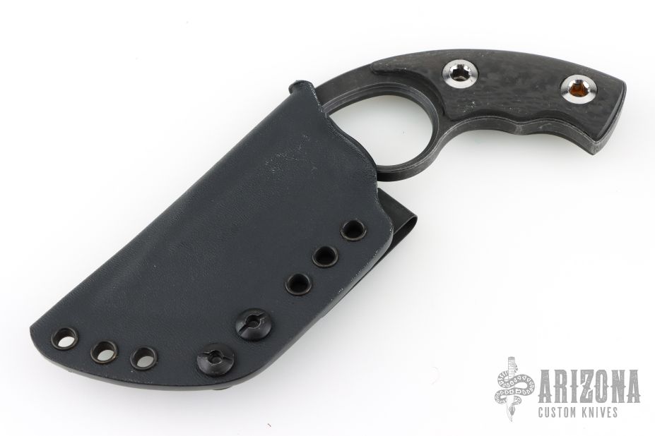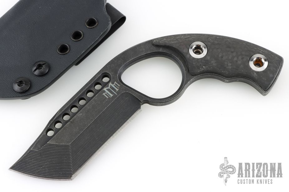 This knife by M3 Tactical features a black stonewashed blade with milled bevels and fullers, .254" blade stock and 1.466" blade depth, full tang construction with carbon fiber scales. Comes with a Kydex sheath Excellent condition.
