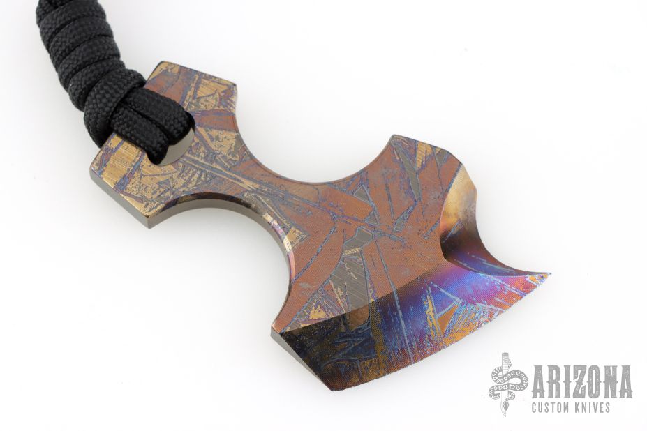 All of our knives are hand made by myself in a very small shop along with my wife Nadine, who does most of our sheath work, in Vista, California. We source all of our materials from U.S. dealers, and use local businesses for our cutting and engraving jobs. My design emphasis is one based on ergonomics first. I believe a good knife should function as an extension of the users hand and, as such, should be both comfortable and secure in the grip. All of my designs start from the handle and grow from there. Most of our tactical knife designs are hollow ground on the primary edge, with a convex ground tip. This gives the user both the fine cutting edge afforded by a hollow grind, with the durability and piercing power of a much more robust tip. Our tomahawks and axes both have convex ground primary edges for increased durability during impact strikes. Due to our close proximity to the ocean here in San Diego County, We focus on using materials that can withstand highly corrosive environments such as salt water. Composite handle materials such as carbon fiber, G-10, and Canvas Micarta are used for most tactical knife handles, and all-titanium hardware on our fixed blade tactical knives, hawks, and axes. All of our tactical knives, hawks, and axes are produced in 6Al-4V Titanium with tungsten carbide bonded edges. Our Tactical knives are also offered in high grade steels such as CPM S30V, CPM 20CV, and CPM 154, while most of our kitchen cutlery is done in AEB-L – a very high grade of stainless steel originally developed for razor blades. For questions, comments, or customer service, you can reach us at [email protected] or 619-228-9300.