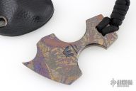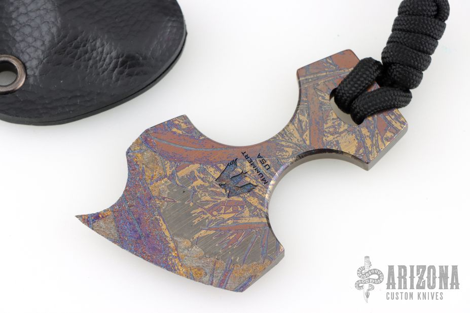 Designed to be a small cutting tool or a backup defensive weapon that is easily carried anywhere, this spunk from Mummert Knives delivers an amazing amount of cutting ability in a small package. The Spunk is constructed out of .205” thick 6Al-4V titanium with tungsten carbide fused to the edge attaining a Rockwell hardness of 72 at the razor sharp edge.  Includes a kydex sheath. Excellent Condition.
