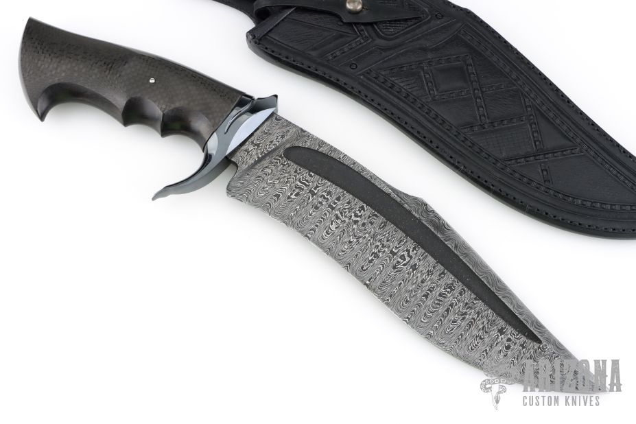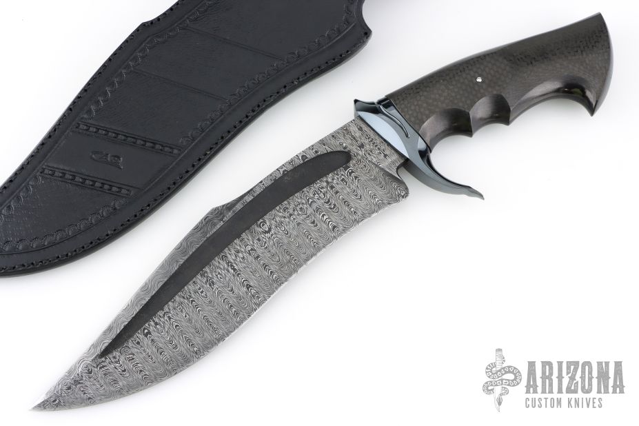 Bowie Fighter - Damascus and Carbon Fiber