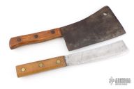 This Model 800 Cleaver by Briddell features an 8" blade with .250" blade stock and 4.708" blade depth, full tang construction with wood scales. Has some oxidation and light pitting, good/fair condition for its age. Made in the 1950s-1960s.