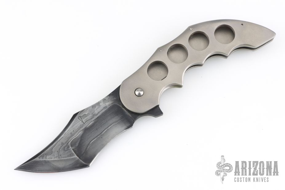 "Each blade is handmade by me in the USA using manual machines. I specialize in hard use tactical folders with the best materials I can get my hands on. My current blade steels are RWL-34, stainless steel Damascus, and San Mai. I use various materials that include Titanium, Carbon Fiber, Zirconium, MokuTi, Timascus."