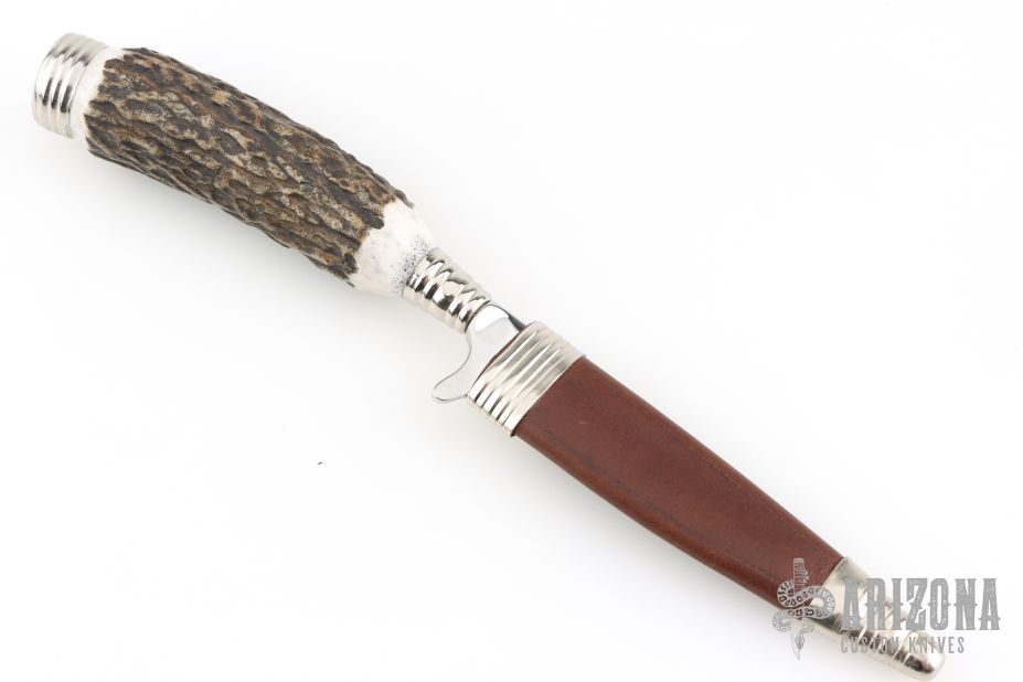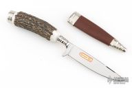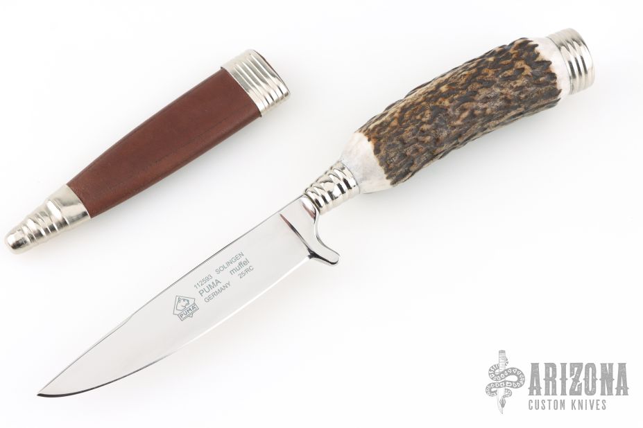 The PUMA "muffel" is a classic, forged, stainless steel knife. In German-speaking countries, this popular style is often used as a traditional knife, particularly for preserving regional customs. The traditionally designed knife is forged with a hand guard and features a rounded tang topped with a grippy staghorn roller and end cap. Whether used as a hunting or traditional knife, this knife has been a staple in our pattern books for well over a century and will undoubtedly retain its reputation as a "typically German knife" for years to come.