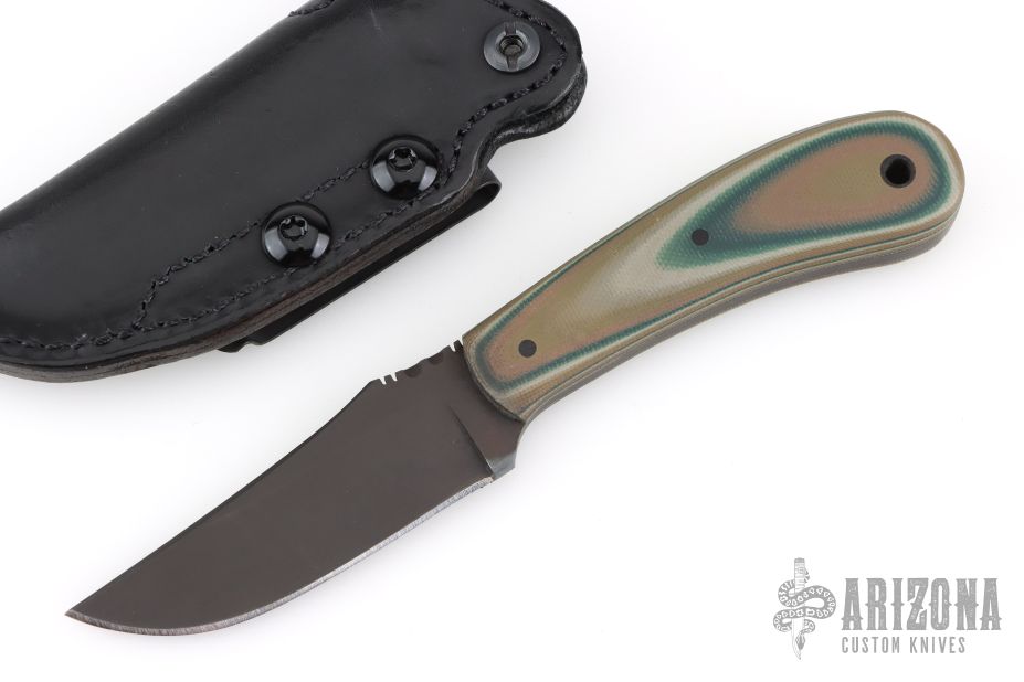 SD1 (STANDARD DUTY 1) For some tasks smaller is better and, often, legal for carry in areas/situations where knife regulations are rigid. SD1 has a trailing point, is light weight and well balanced, and provides extreme cutting performance from a 3” blade. All leather sheath has a tension screw for adjustment. The Discreet Carry clip can be moved from side to side to accommodate left or right hand and inside or outside waist band carry.