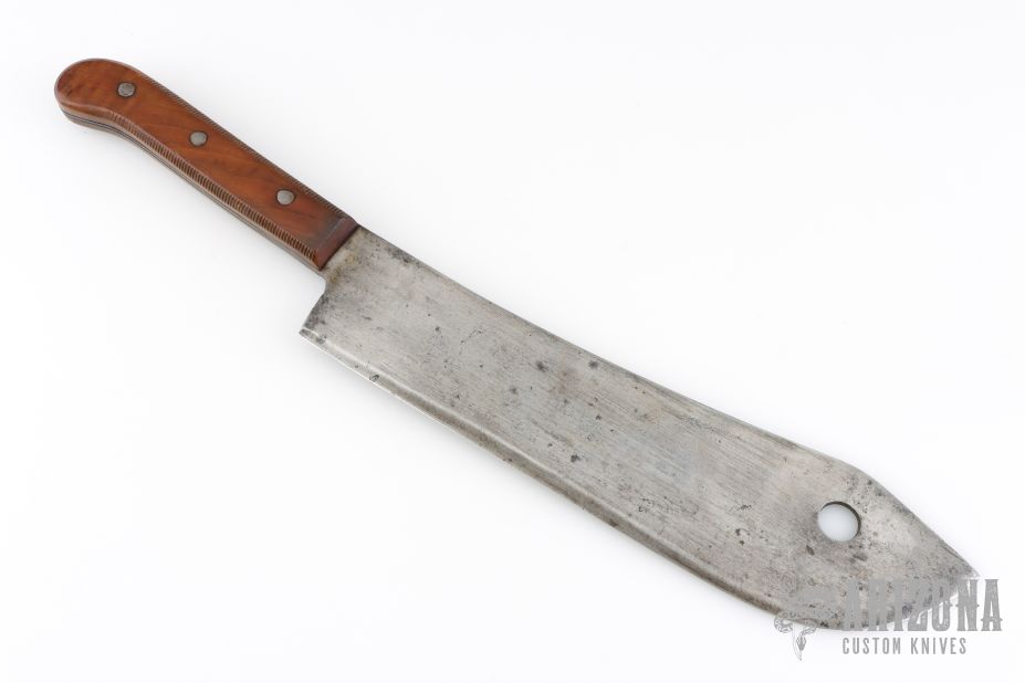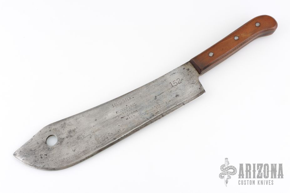 This Foster Bros Knife is made of carbon steel and has .297" blade stock and 2.900" blade depth, full tang construction. The handle has wood scales and steel pins. Has some oxidation and scratches throughout, good condition for its age.