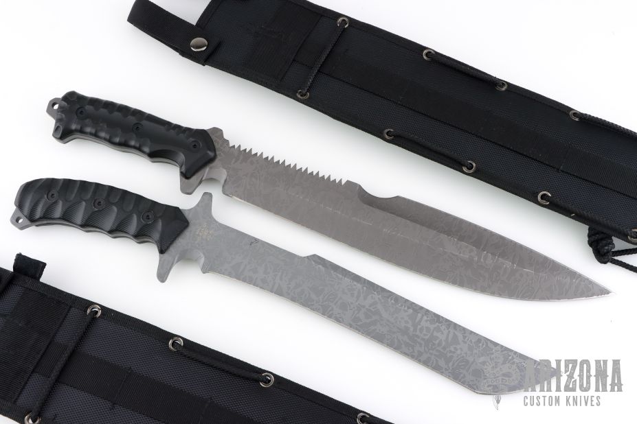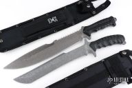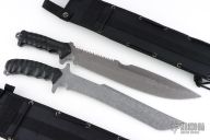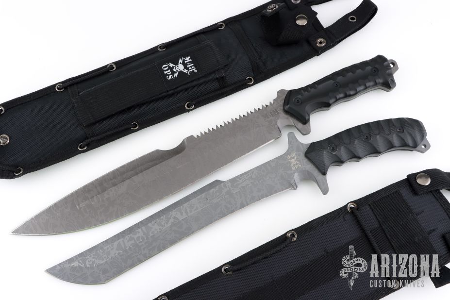 United Cutlery took its M48 combat machete and made it even more aggressive and dangerous, leaving no doubt that it will have you covered no matter what the mission. The M48 Combat Machete Gen II has a full-tang, 11 1/2” 3Cr13 stainless steel blade with a titanium electroplated finish and a wicked partial sawback spine. The reinforced, impact-resistant TPU handle is heavily grooved for a slip-free grip and is secured to the tang with screws. The 17 3/4” overall combat machete comes in a reinforced MOLLE belt sheath that can be worn or attached to gear. From the powerful, full-tang blade design to the military-style, reinforced MOLLE sheath, the M48 OPS Combat Machete Gen II is built to rigorous specifications for years of durable use and applications. Attach a lanyard to the exposed tang and put this bad boy to work! Comes with original nylon sheath, the top edge has been sharpened, has a couple light scratches, otherwise excellent condition.