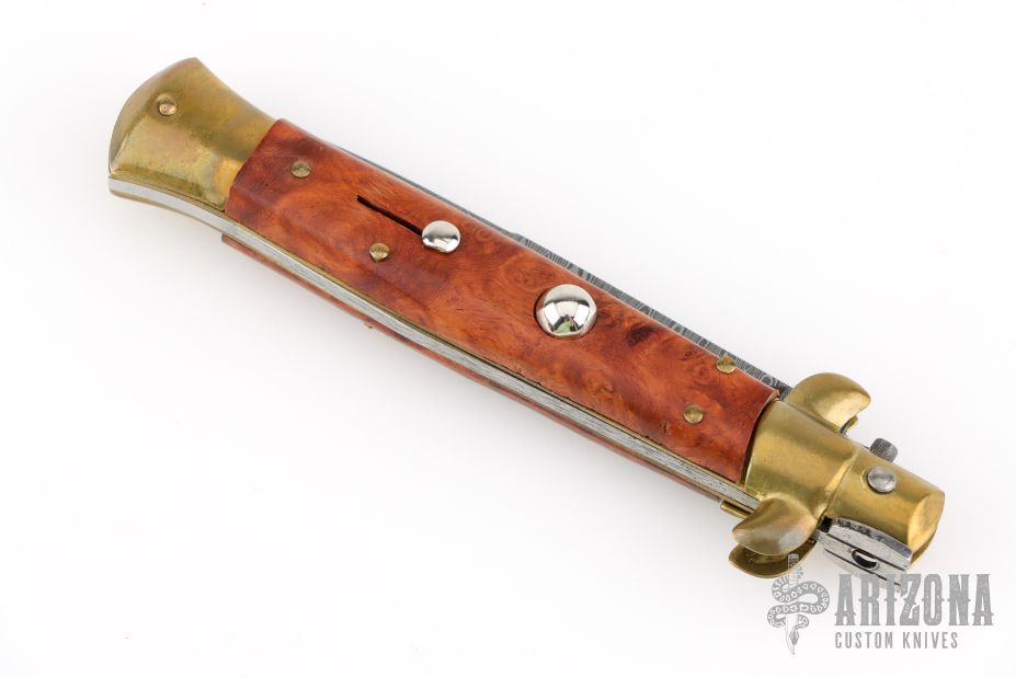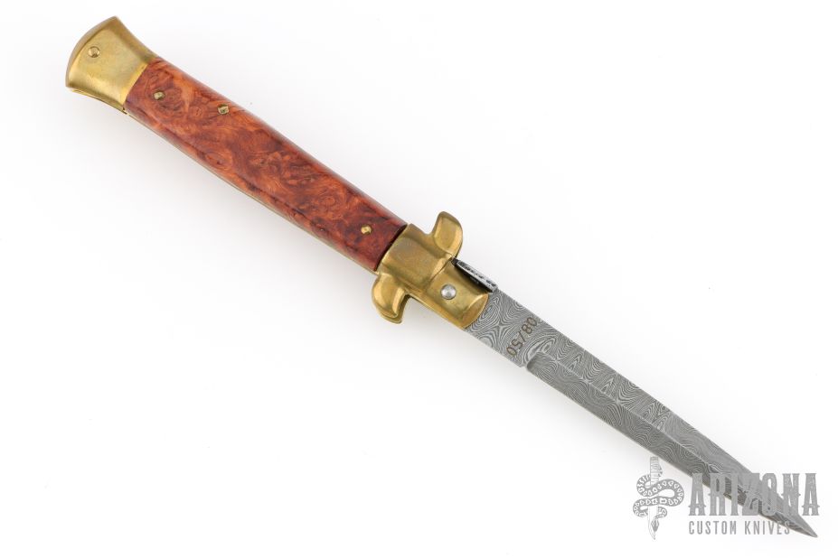 9" Swivel Bolster Auto - Damascus and Burl Wood - 2000 LE #8/50