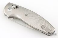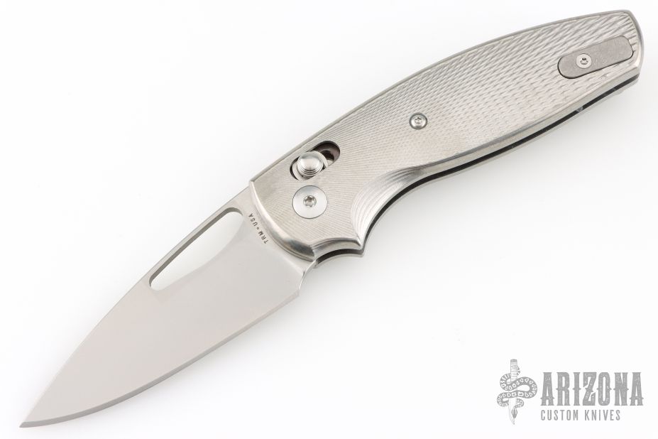 This Bulldog River lok by Three Rivers features a tumble finished blade with thumbhole. The handle has titanium scales, notched black backstrap, and tip up clip. Nice detent, lockup and blade seating. comes with original box and papers. Excellent condition.