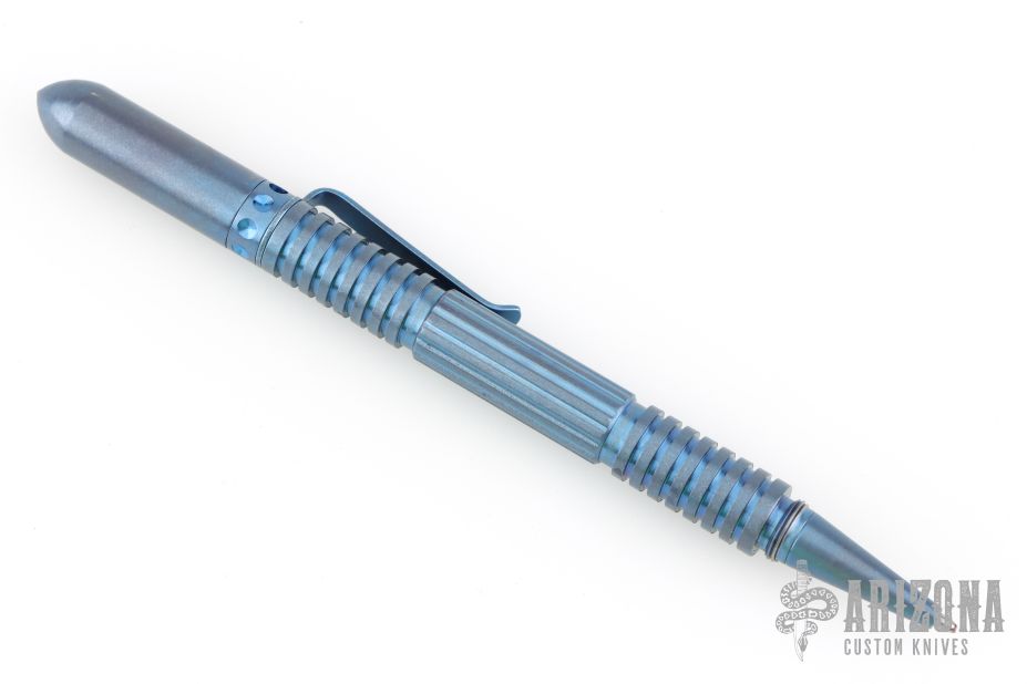 This is Rick Hinderer's new "Extreme Duty Pen", an upgraded version of his Modular Kubaton model. Rick describes some advantages of this new model: "This pen is shorter overall than the Modular Kubaton with pen attachment, this will make this pen easier to write with but still making it a very formidable weapon. This pen is also using the larger Fisher Space pen refill, which means more writing between refills. The top end of this pen still retains the threading for the Modular Kubaton attachments so you can still use the same attachments to do up your pen the way you want it." Excellent Condition.