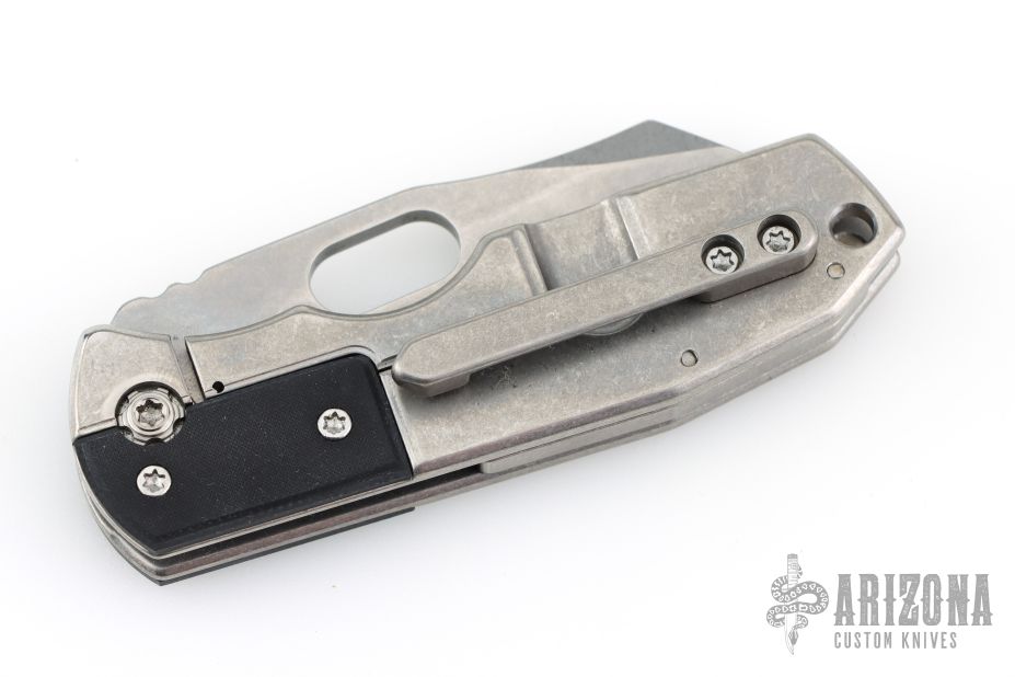 Other elements you won't often see in other contemporary production folders are both a solid Ti backspacer and a one-piece billet milled Ti clip, also mounted into a recessed pocket for strength.