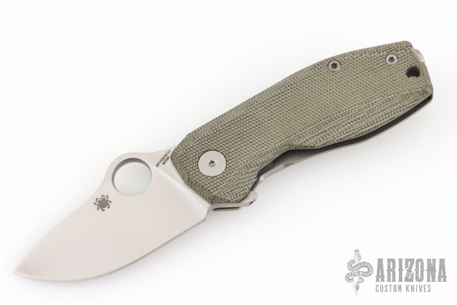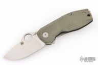 The Spyderco SpyNano is inspired by the LionSteel Nano. It's a smaller pocket knife, as the name implies, but is built to work. It's got the trademark Round Hole and is outfitted with a removable flipper tab. It has a solid green canvas Micarta show scale and a frame lock. This is a Flash Batch of knives that is individually serialized and extremely limited. If you want one, act as soon as you can!