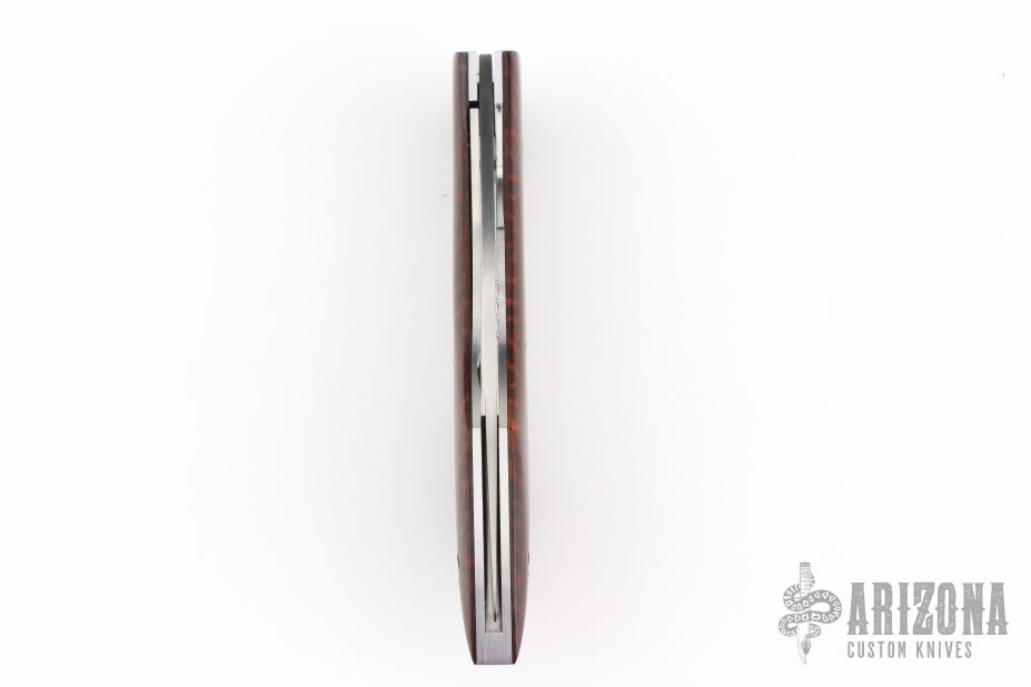 This linerlock by Laraud Blades features a satin finished blade with 4 dots for opening. The handle has snakewood scales, satin finished stainless steel liners and backspacer. Nice detent, lockup and blade seating. Comes with a zippered case and COA. Excellent condition.