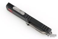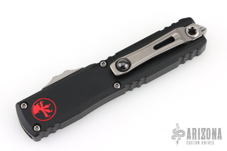 The new Ultratech further distinguishes itself from its predecessor with improved gimping, a slightly wider handle, a slightly longer and wider blade, a lower-profile glass breaker that's integrated into the handle, a wider thumb slide, a titanium pocket clip with a silica carbide ball, and Torx hardware. As with Microtech's other Gen III OTFs, a lanyard hole runs through the large base screw that secures the pocket clip, and the pocket clip is reversible for left-handed users. The knife's blade and handle thickness match that of the former iteration.