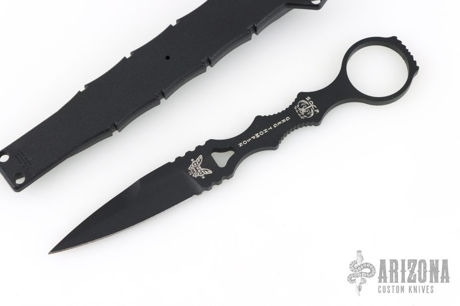 The Benchmade 178 SOCP Dagger is a Greg Thompson design. He is the creator of the Special Operations Combatives Program (SOCP) and has years of training and experience to draw from. This skeletonized dagger has a finger loop that makes it easy to deploy and use in quick order. It is made from 440C stainless steel with a black finish. The 178 SOCP includes a black sheath with clip.