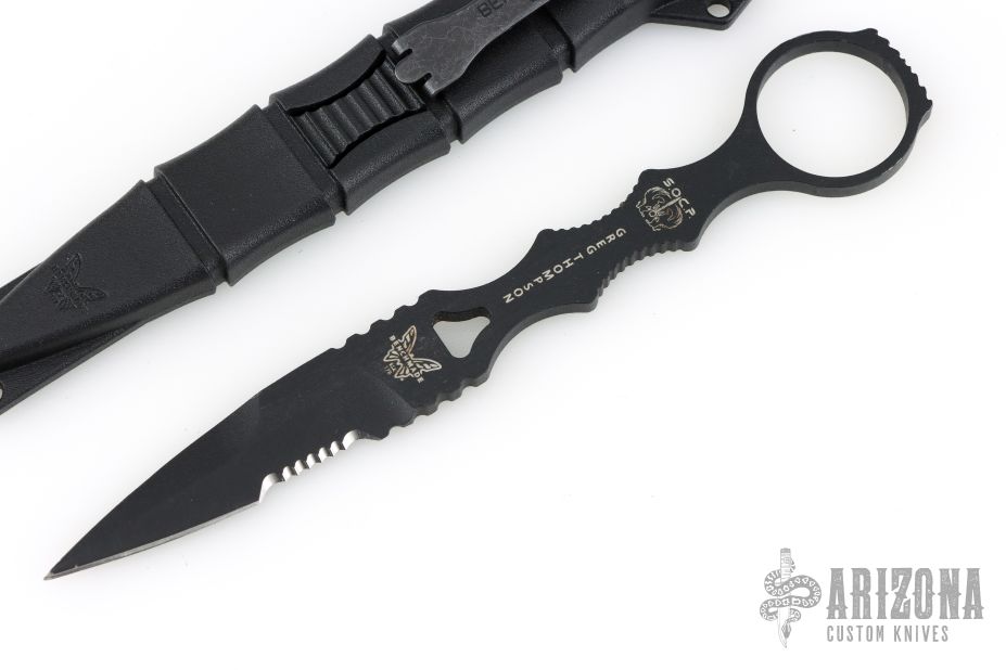 The Benchmade 176 SOCP Dagger is a Greg Thompson design. He is the creator of the Special Operations Combatives Program (SOCP) and has years of training and experience to draw from. This skeletonized dagger has a finger loop that makes it easy to deploy and use in quick order. It is made from 440C stainless steel with a black finish. The 178 SOCP includes a black sheath with clip.