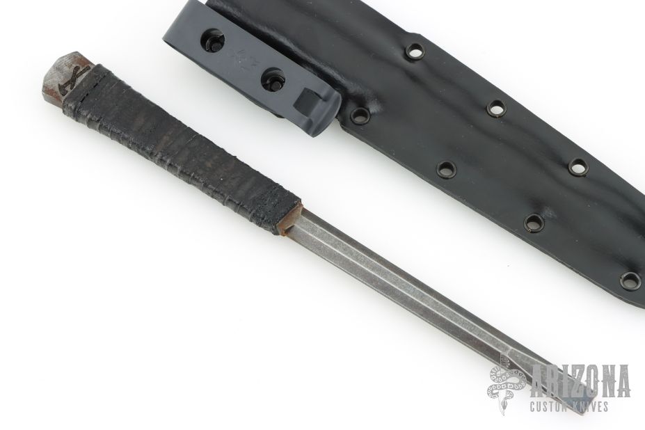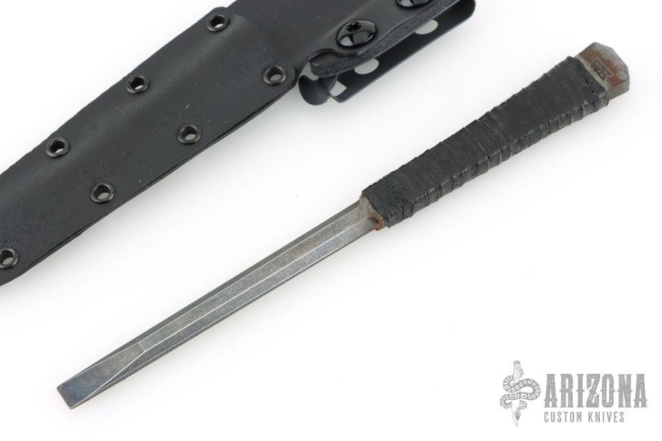 The Winkler Knives Screwdriver Pick is a tool designed to turn Slotted Screws, punch holes, break ice, dig. In addition, it can be used as an effective defensive weapon to stop an attacker. The Screwdriver Pick has a leather wrapped handle and a Black Oxide finish. The simple molded sheath has a removable spring belt clip. Lashing holes facilitate alternate mounting.