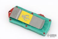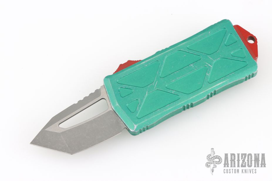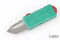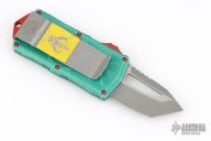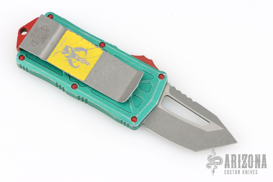 This Microtech Exocet features an apocalyptic finished tanto blade. The handle has a distressed green aluminum handle and a stainless clip that doubles as a money clip dated 02/2021, S/N 2882. Comes with original box and papers. Excellent condition.