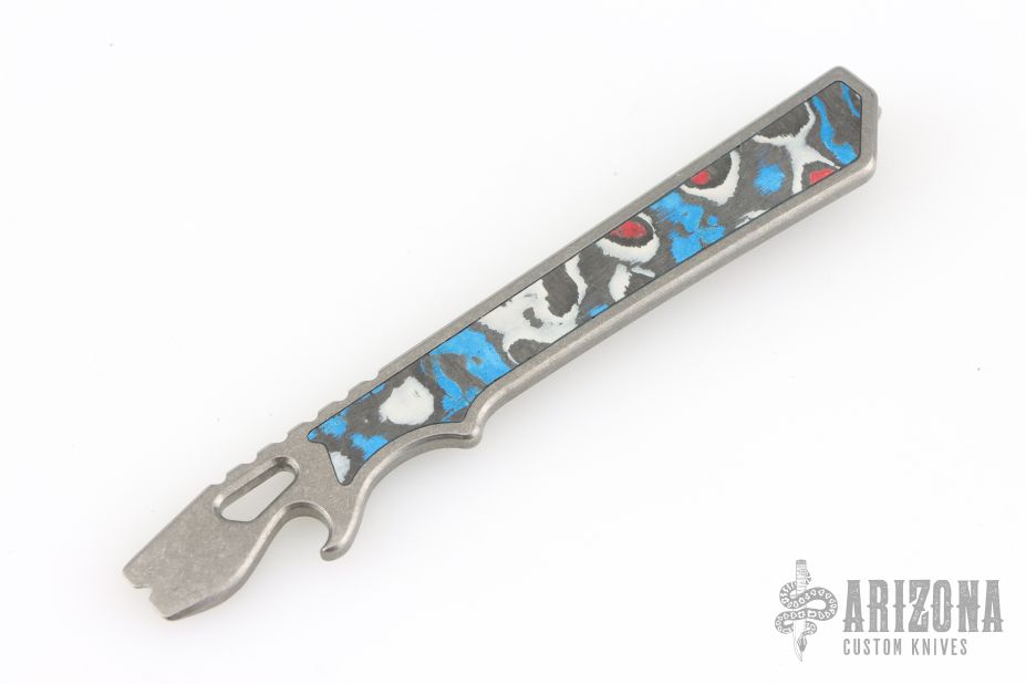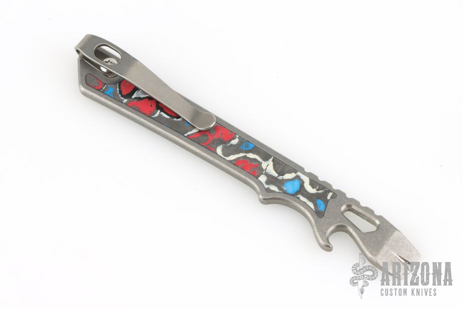 This pry tool is made from stonewashed Grade 5 (6AL-4V) titanium, and has Captain America Carbon Fiber Inlays