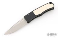 This Magic BR-1 Bolster Release Automatic from Pro-Tech Knives features a drop point stonewashed 154-CM blade with swedge. The handle features a black aluminum frame with checkered bolster and ivory paper micarta inlay on the "A" side of the handle. Black coated stainless steel clip is positioned for tip up carry. Lanyard hole in the pommel. Comes with original box and papers. Has some light scuffs, otherwise excellent condition.